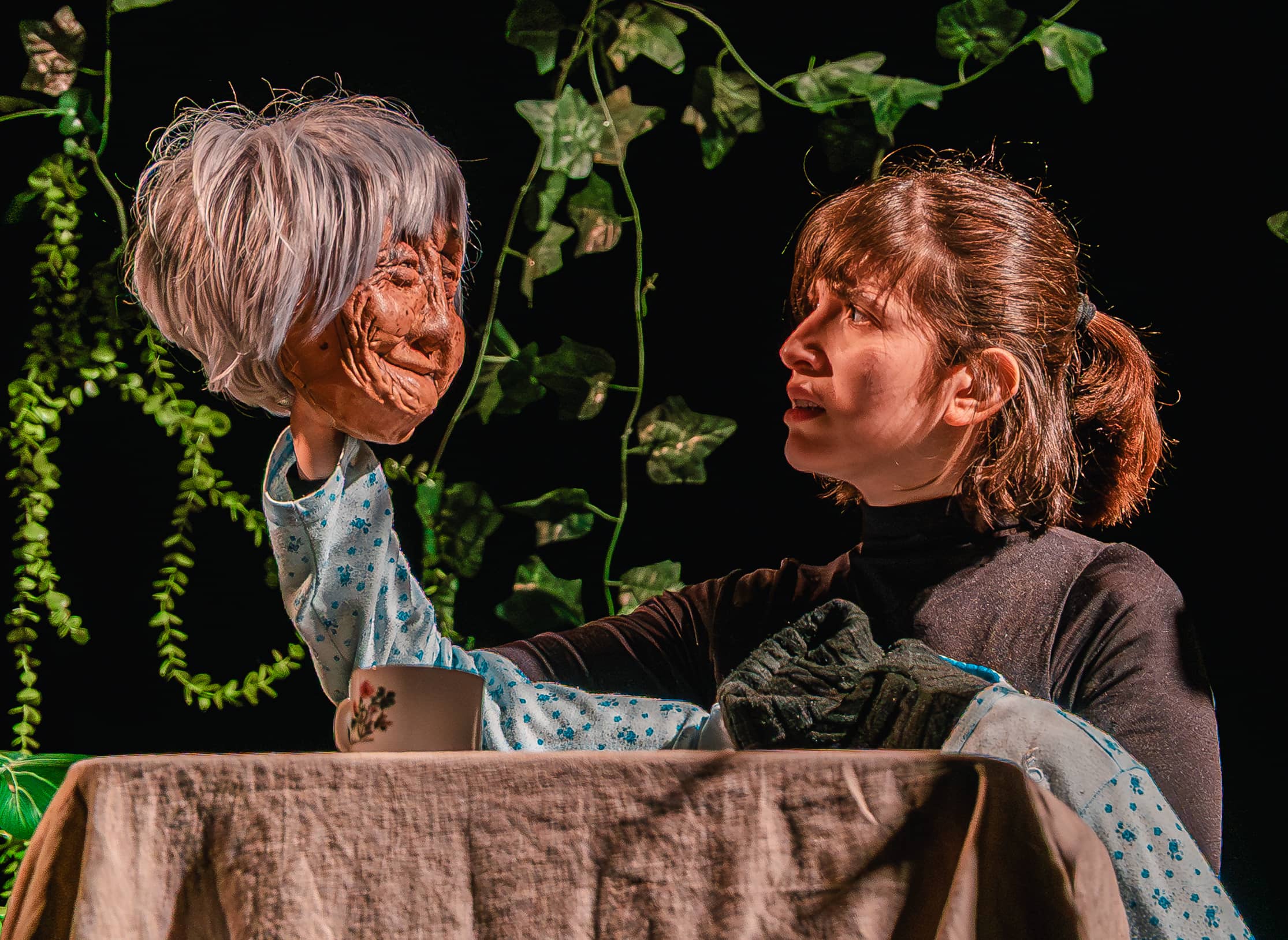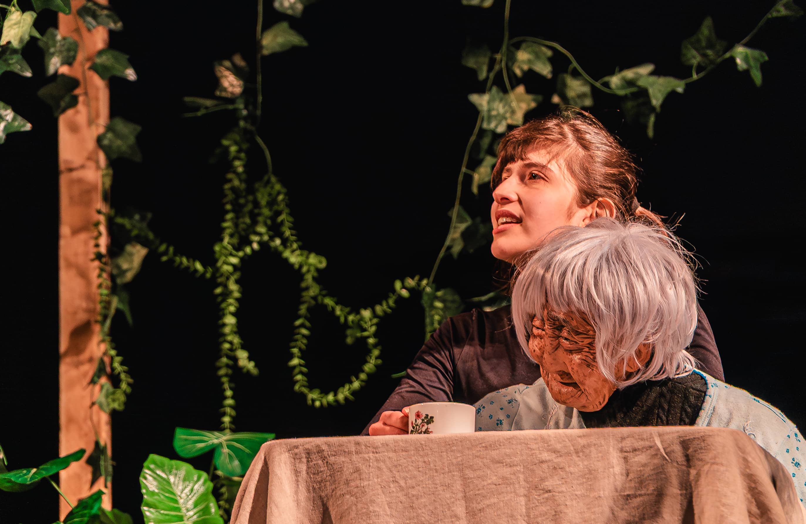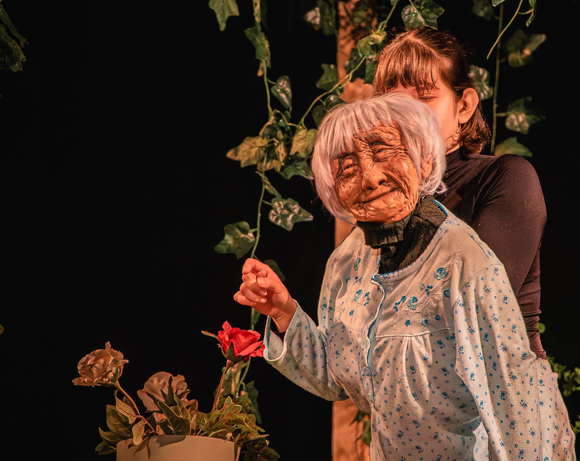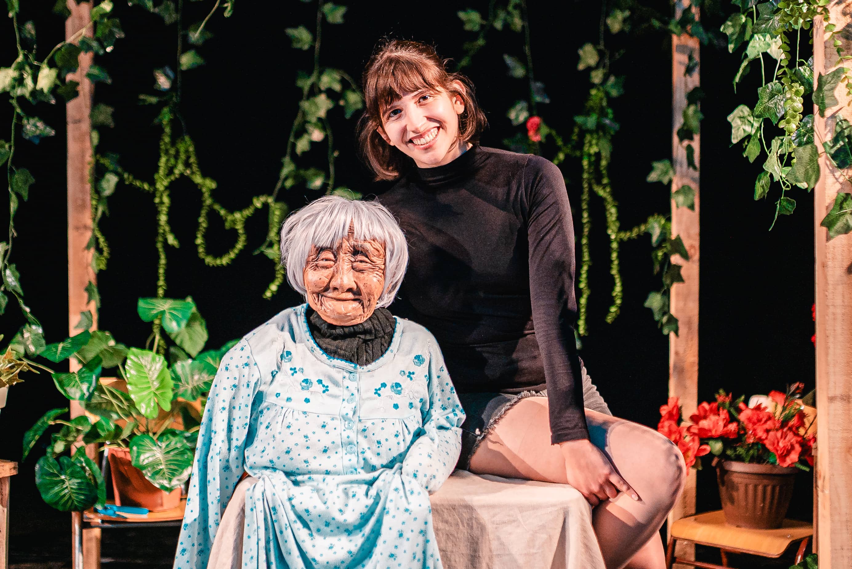 La puesta en escena destaca por una escenografía sencilla pero cuidadosamente elaborada. La obra cuenta con una sola actriz, quien interpreta a ambos personajes: la nieta y, mediante una marioneta, a la abuela. Este recurso escénico potencia la intimidad del relato y permite una conexión profunda con el público.