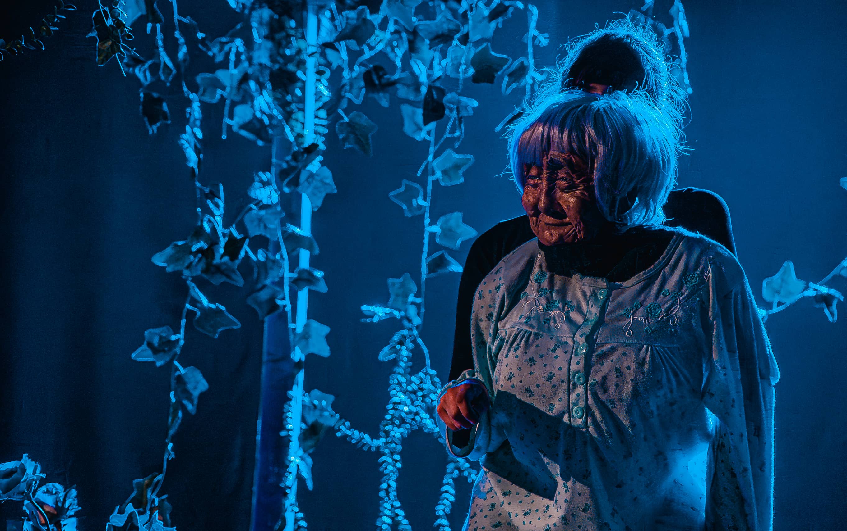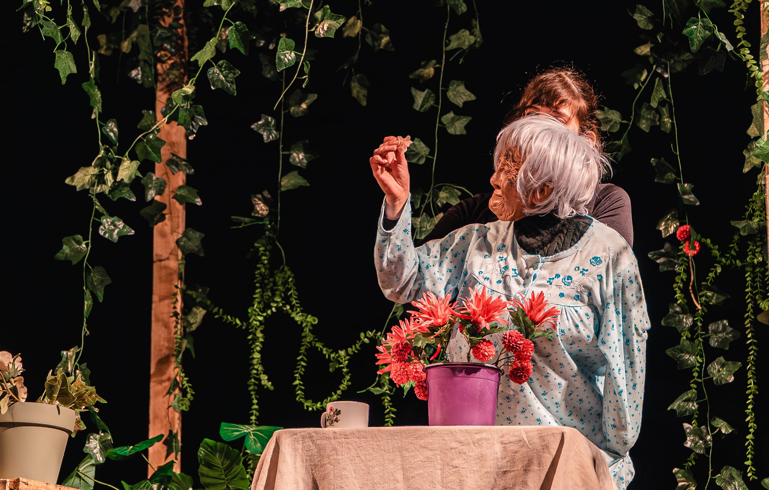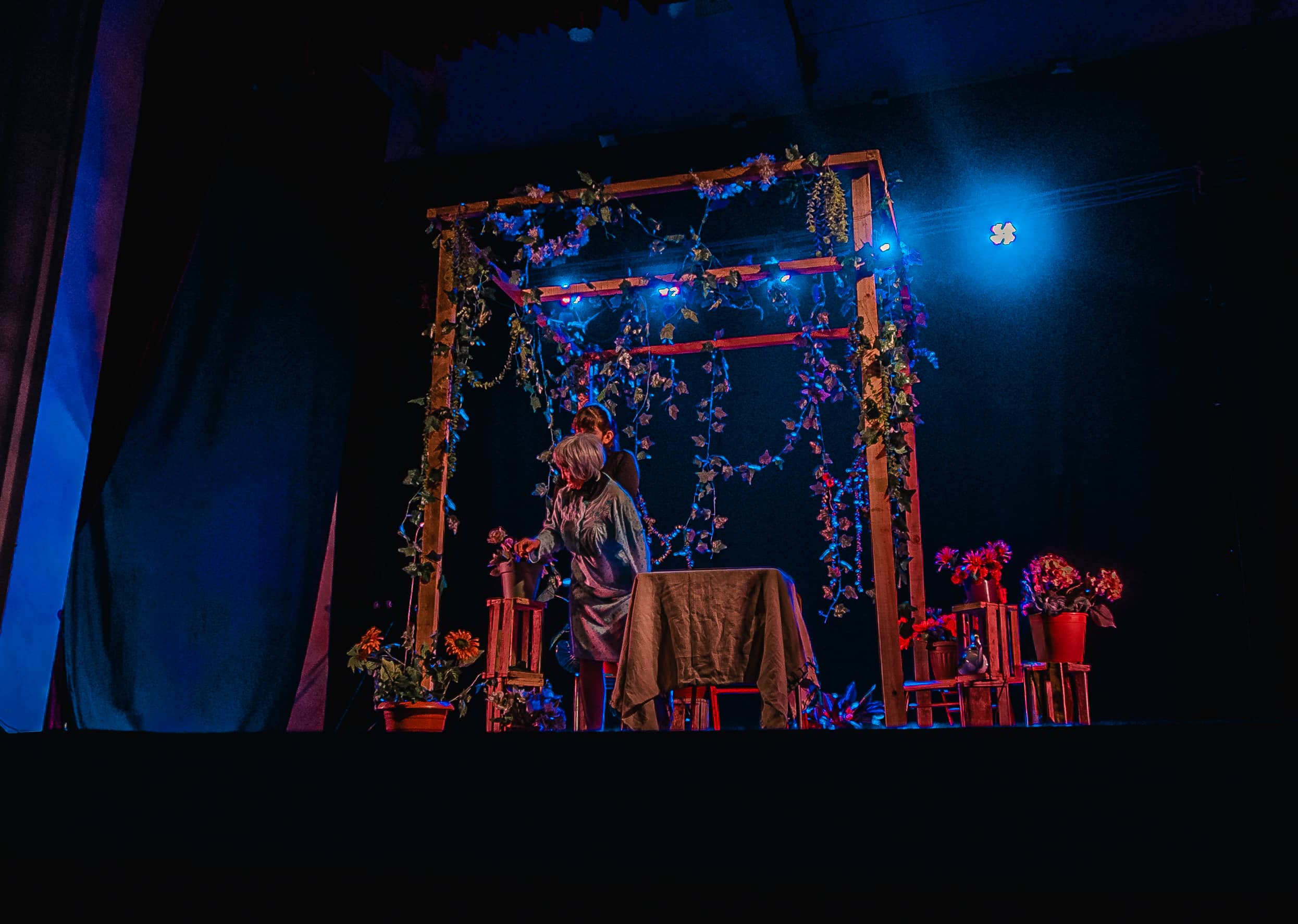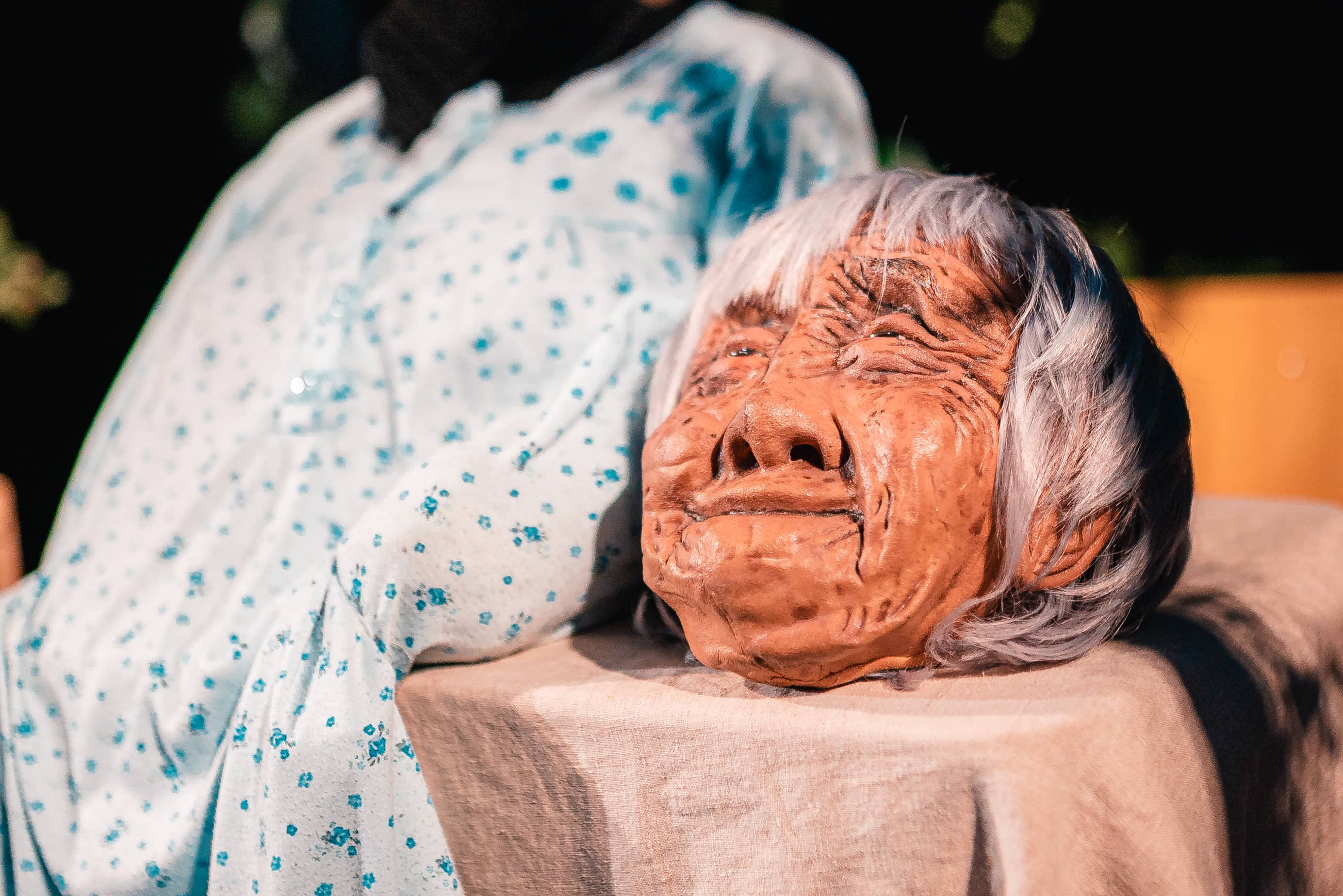 La puesta en escena destaca por una escenografía sencilla pero cuidadosamente elaborada. La obra cuenta con una sola actriz, quien interpreta a ambos personajes: la nieta y, mediante una marioneta, a la abuela. Este recurso escénico potencia la intimidad del relato y permite una conexión profunda con el público.