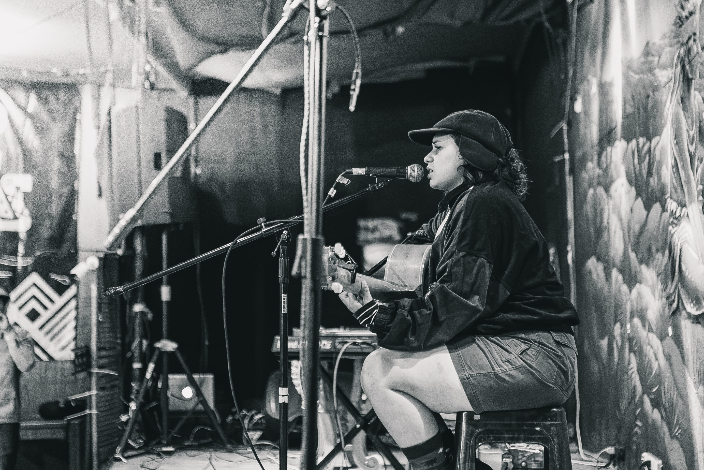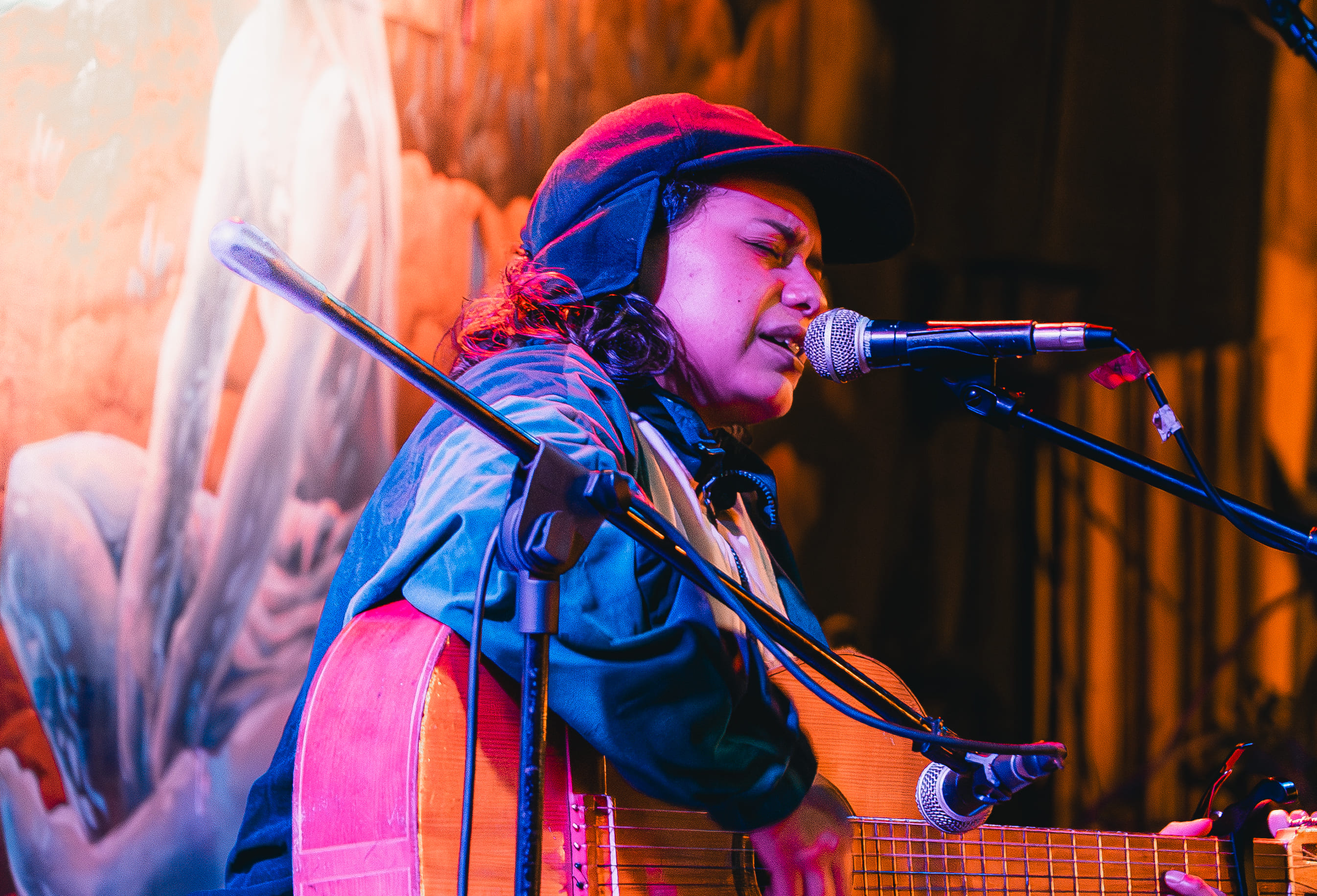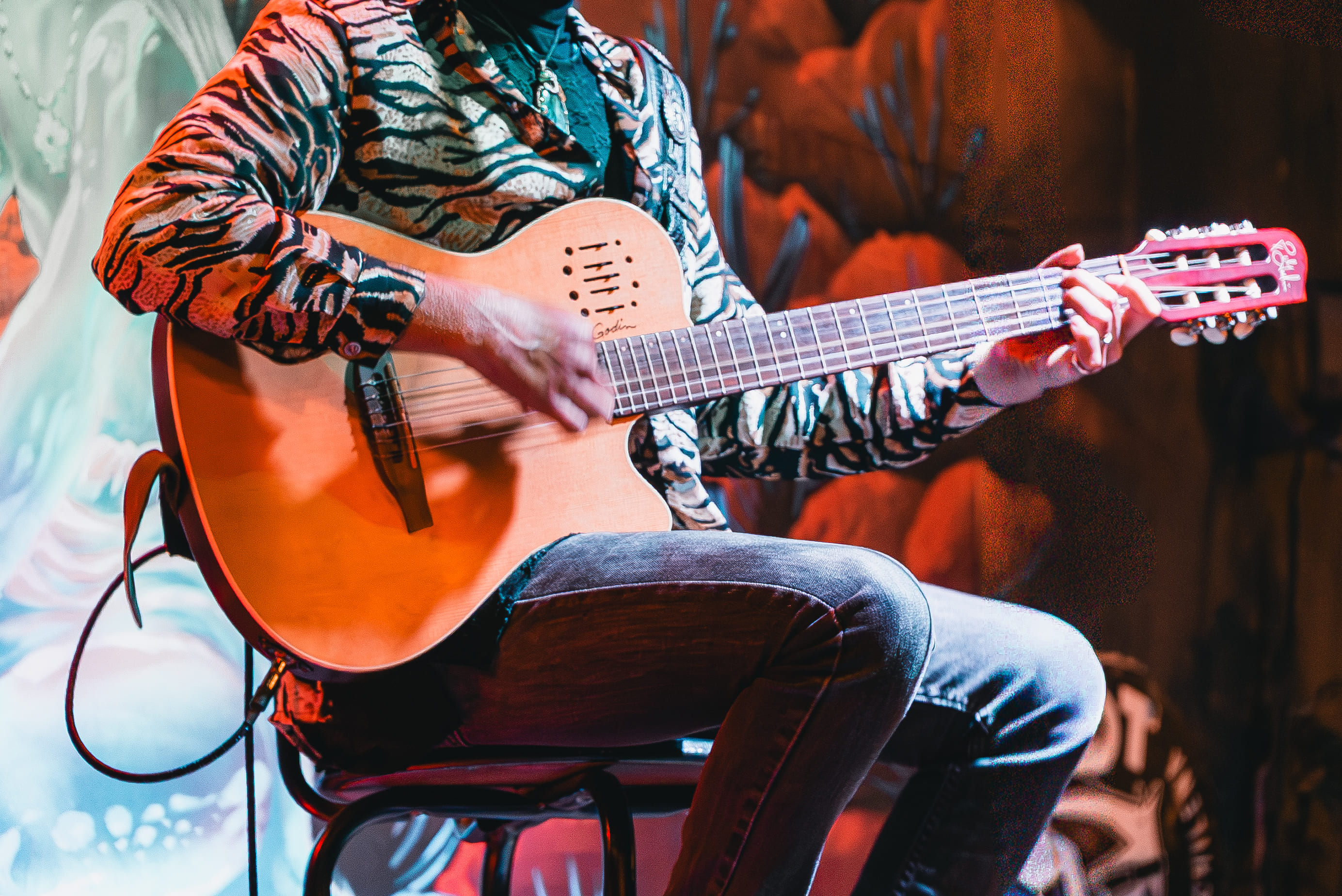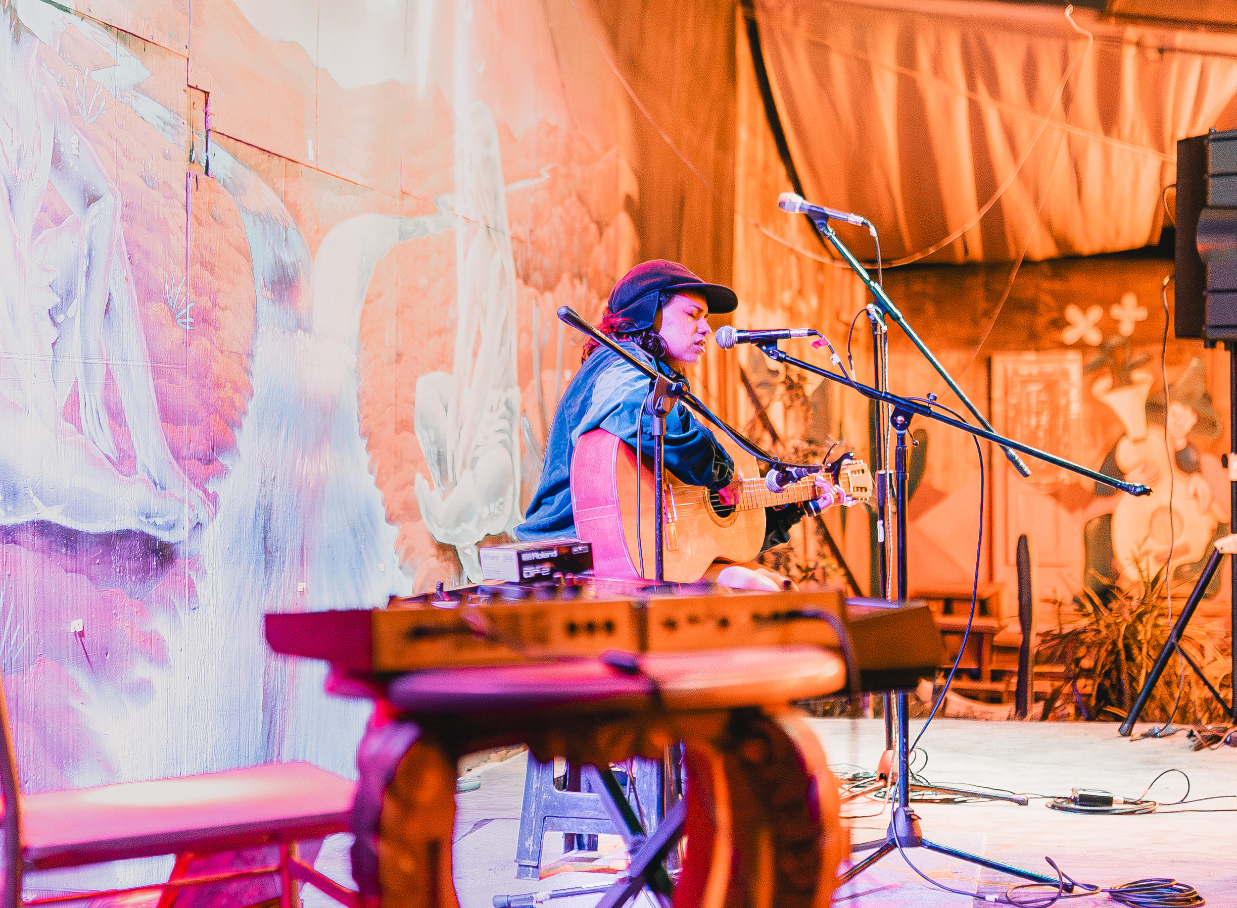 Chinoy subió al escenario a las 22:30 en punto, comenzando con “Cantar”, ejecutada con gran destreza en guitarra, seguida por “Carne de gallina”. Su voz particular llenó el recinto, y el sonido impecable realzó cada interpretación, que fue aplaudida con entusiasmo. Sorprendió con una versión cueca de “De la Treinta York”, clásico de su repertorio.
