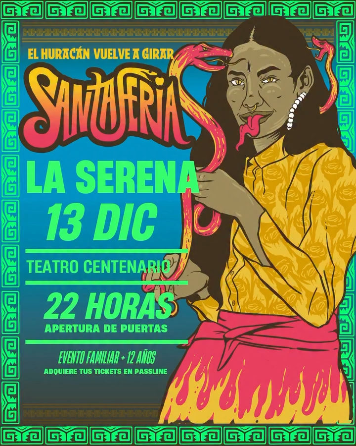 Compra tus entradas acá https://www.passline.com/eventos/santaferia-en-la-serena?srsltid=AfmBOorMMTezJU5_U2VUXFsafE0sxmWFnrxxsjcg7FlludCIyFAfj_p5