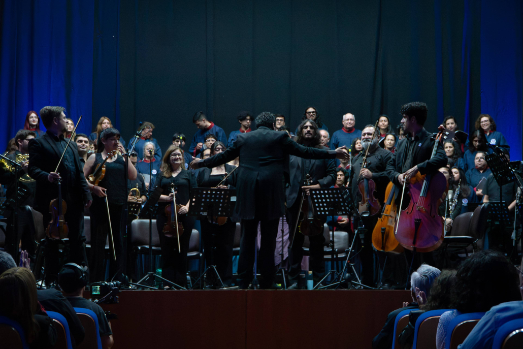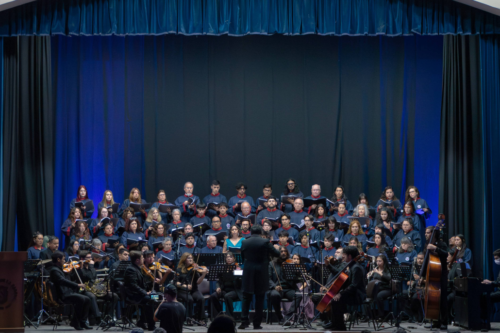 La obra Misa Gabriela Mistral: “Desolación”, adaptada por don Hugo Domínguez, fue interpretada por el Coro Sinfónico de la ULS bajo la dirección de Valeska Cabrera Silva, junto a la orquesta dirigida por el maestro Manuel Figueroa Bolvarán. La presentación cautivó al público asistente, que en gran número llegó al recinto universitario para disfrutar de la música y las imágenes que evocaban uno de los hitos literarios más importantes de Chile.