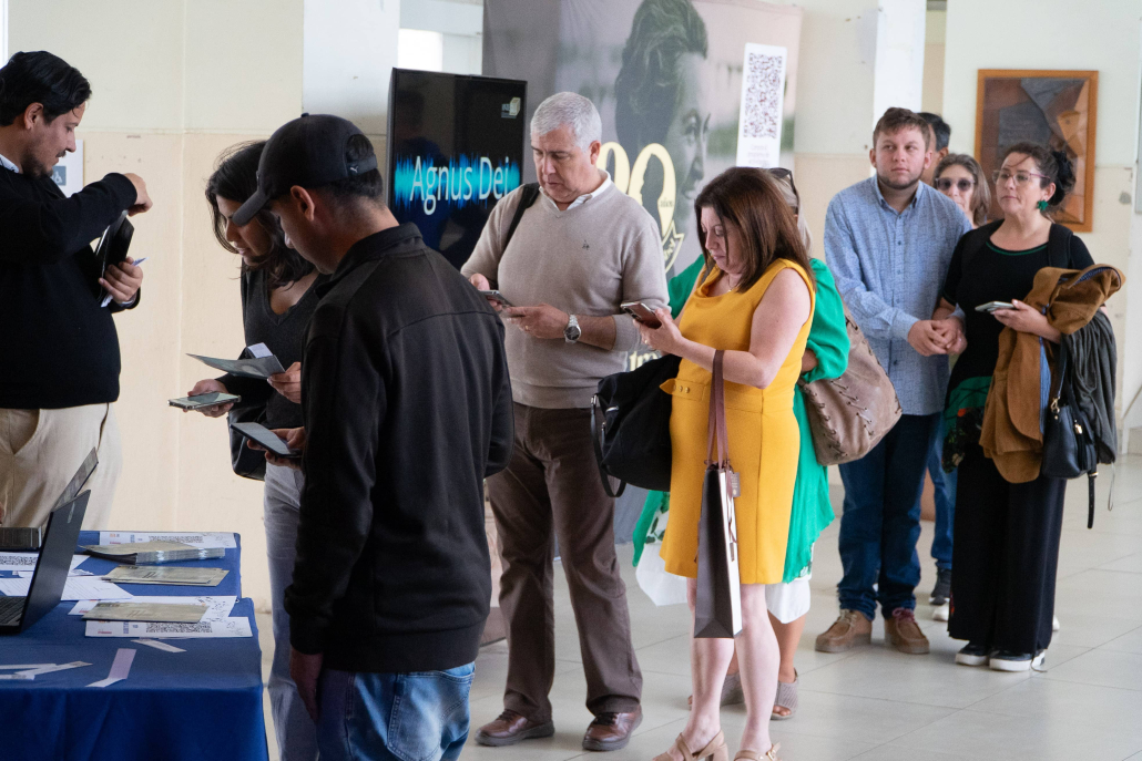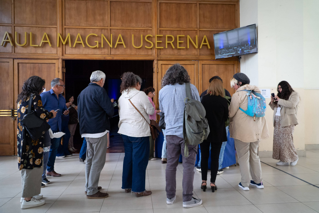 A las 18:45 horas se abrieron las puertas y la audiencia comenzó a llenar rápidamente el salón. En el pasillo de acceso se exhibían imágenes y audios de la ceremonia de entrega del Nobel en 1945, lo que permitió a los asistentes sumergirse en el ambiente histórico de la velada.
