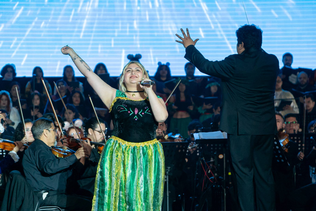 A las 21:10 hrs. la orquesta hizo ingreso al escenario en el estadio la Portada y comenzaron los músicos y cantantes a tomar sus ubicaciones. Los solistas caracterizados de sus interpretados, y los músicos derrochando ambos calidad musical y vocal, con momentos icónicos como la aparición de Wall-e, quien entrego la batuta al director Daniel Flores, o las interpretaciones por ejemplo de “libre soy” y “recuérdame”.