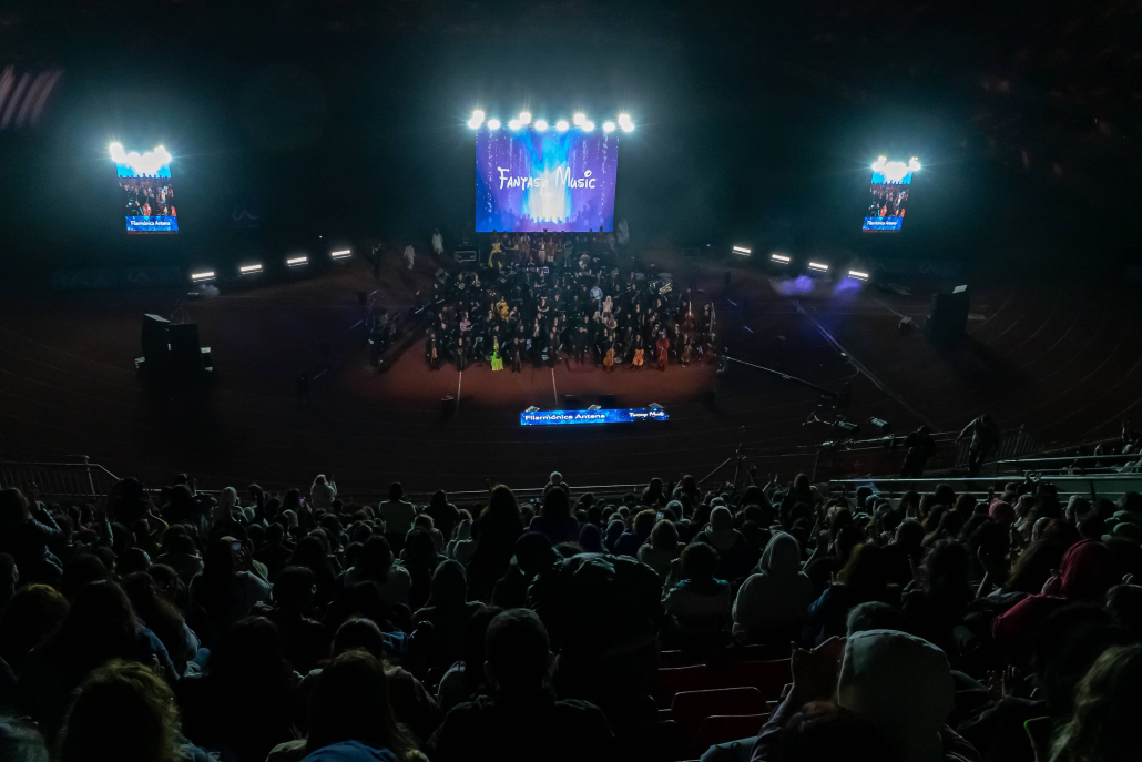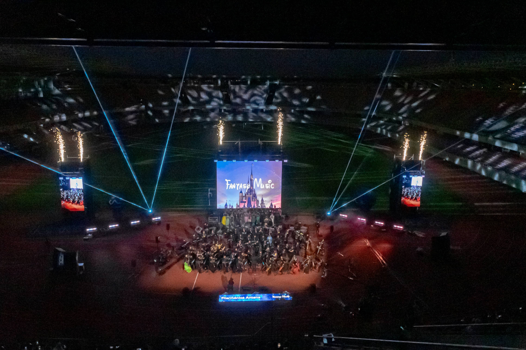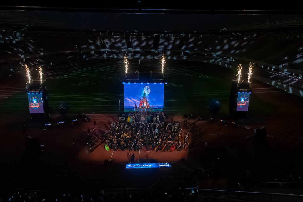 La Orquesta filarmónica Antena y el Coro polifónico Pedro Aguirre Cerda deslumbraron a los casi 5 mil asistentes al estadio La Portada con su show Fantasy Music. En este evento de la Caja de Compensación Los Andes en conjunto con la Academia PAC nos entrego esta ultima una selección de las mejores canciones de la casa del Ratón y que están en la memoria colectiva, o las recordamos con la hermosa puesta en escena.