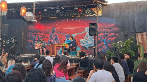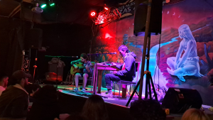 El ambiente del show se fue activando a medida que este avanzaba, primero desde la pareja de músicos que primero son amigos, y esa conexión se vio reflejada en la tarima. Los chicos siempre se mostraron espontáneos, cercanos a la gente que llegó, en otras palabras la barrera del escenario no existía, solo eran dos chicos con sus instrumentos jugando. Las y los presentes respondieron de una forma muy entusiasta, interactuando, cantando, participando e incluso pidiendo sus canciones favoritas, muchas de las cuales fueron finalmente interpretadas. Una característica de las típicas tocatas indie chilenas es justamente su simpleza, su majestuosidad y la cercanía con su público. Se puede decir que todo eso se cumplió. Inclusive a esto se suma que la parte final del show fue prácticamente un ping pong entre los músicos y su gente.