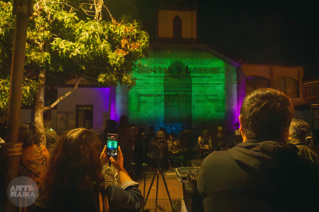 Poco a poco, el público comenzó a reunirse en el frontis de la Iglesia La Merced, lugar escogido para la presentación. Allí se proyectó un mapeo lumínico sobre la fachada de este mítico templo regional, convirtiéndolo en pantalla de recuerdos y evocaciones.
