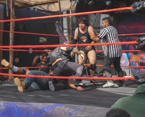 El combate fue violento y lleno de acción: sillas, suplex y patadas voladoras hicieron vibrar al público. Uno de los momentos más polémicos ocurrió cuando Billy B subió a Mr. Cojo al ring y le aplicó un suplex, generando gran impacto debido a la movilidad reducida del invitado. La situación se tornó caótica cuando Billy B intentó usar el burrito de Mr. Cojo como arma, pero Tanke Moxer intervino para detenerlo. El árbitro, que había sido