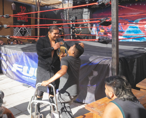 La velada contó además con la presencia del standupero Mr. Cojo, quien siguió las batallas desde primera fila. Sin embargo, la tensión aumentó cuando Mr. Billy B, actual campeón regional, provocó al público y se ensañó con Mr. Cojo. Esto llevó a JM a pactar una triple amenaza por el título regional, con Billy B enfrentando a JP Solaris y Tanke Moxer.