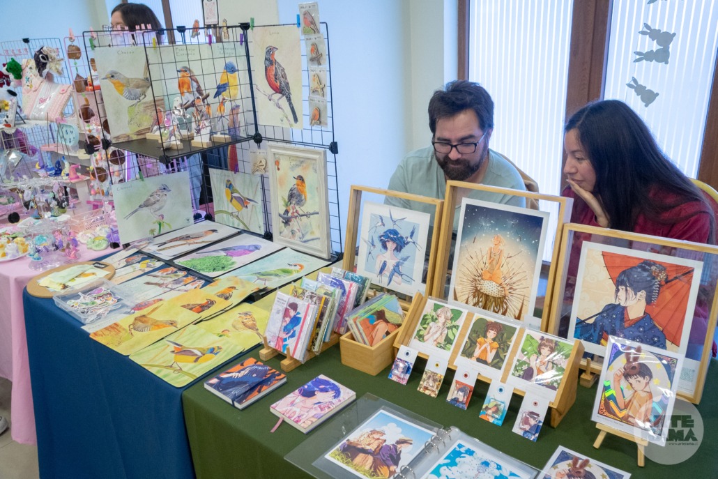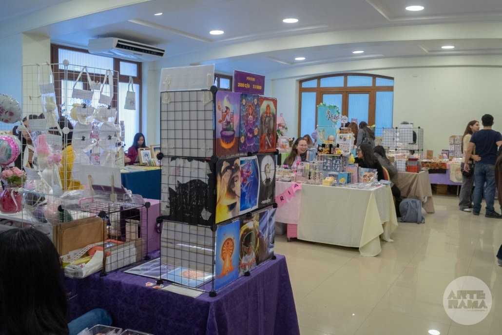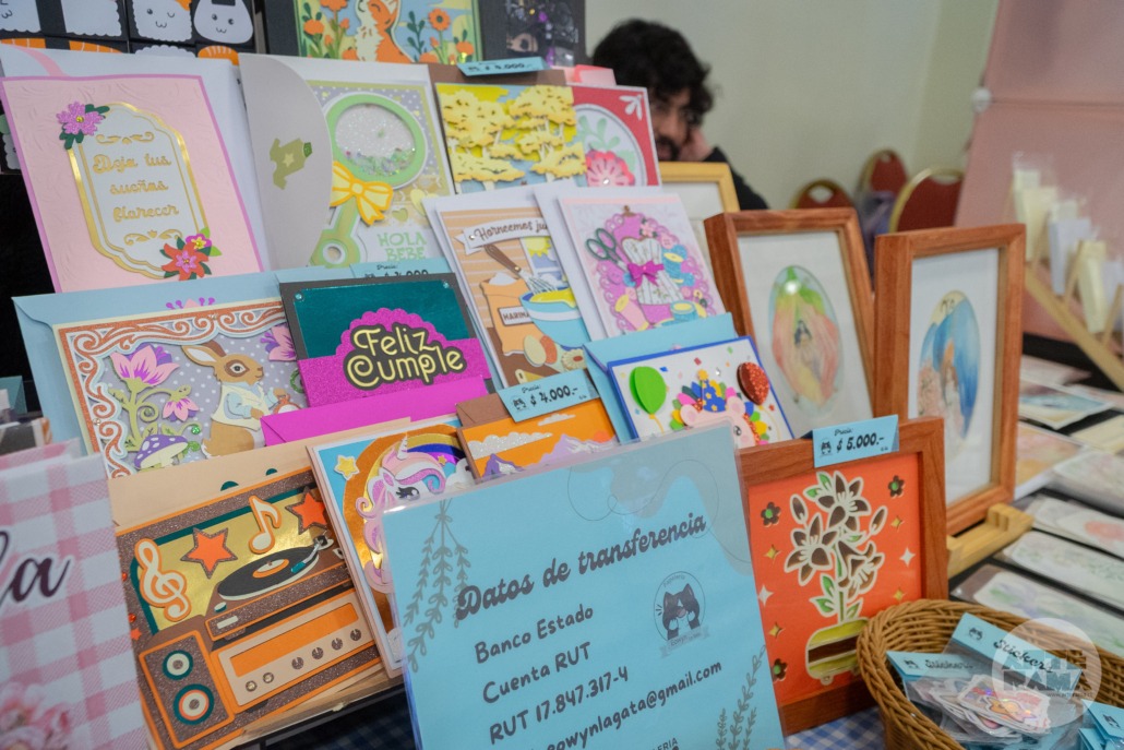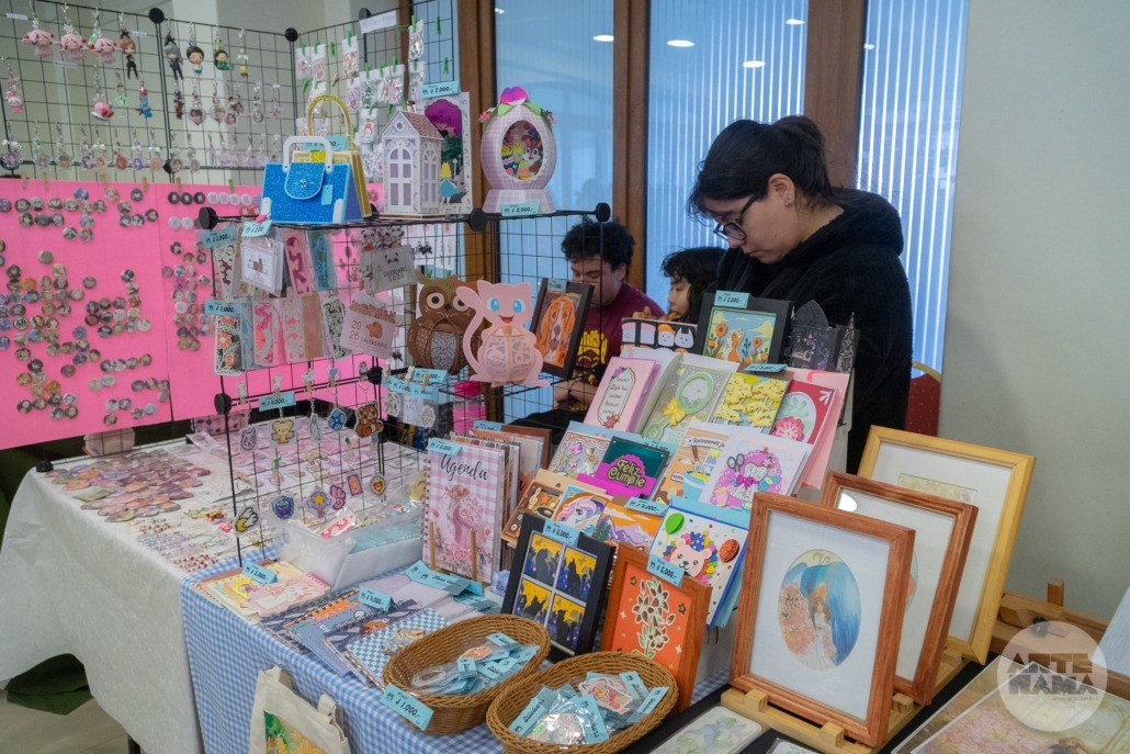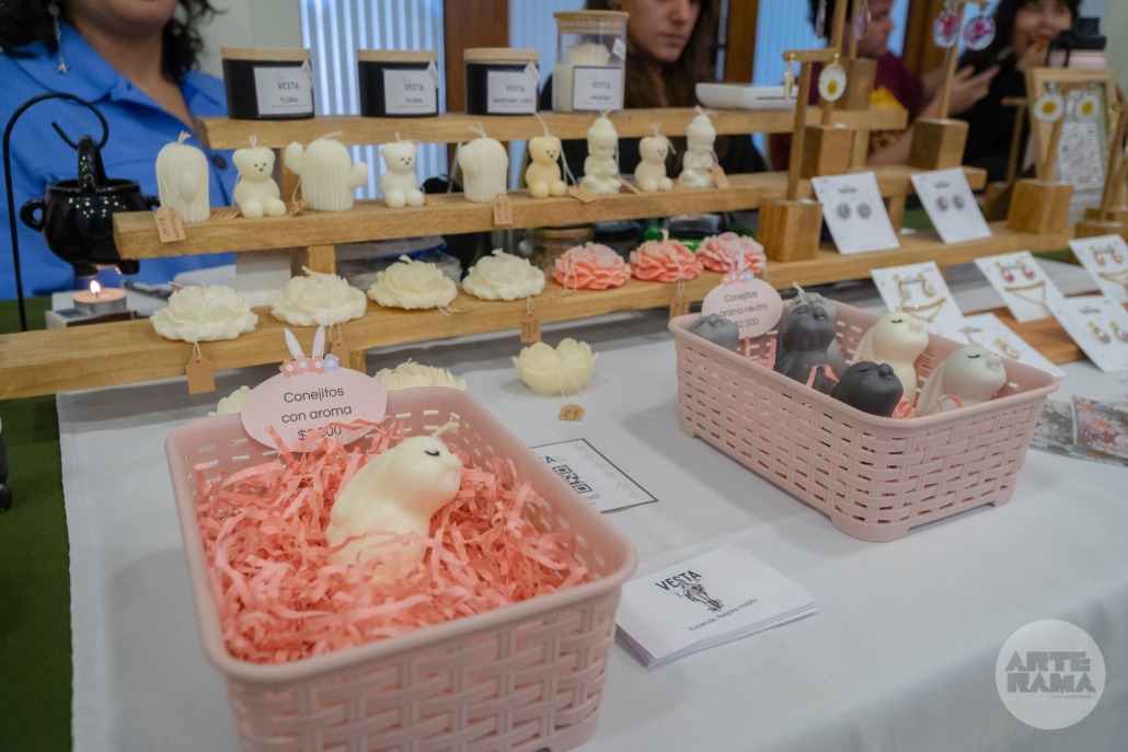 Entre los productos destacados se encontraban jabones artesanales, lámparas y tarjetas en papel, recuerdos, bolsas pintadas a mano, ilustraciones, pegatinas y más, todos elaborados con gran dedicación y calidad.